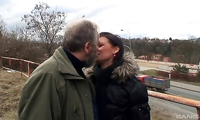 Gorgeous Czech pornstar gets pulverized by a wild old chap outdoors