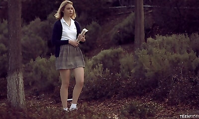 Pale schoolgirl cutie getting her anus stuffed in the early morning