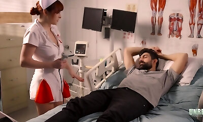 Chesty nurse gives a needy patient a sensual head