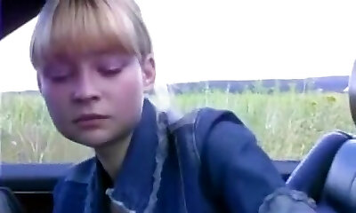 Sexy teenie in cute panties gives me a blowjob and gets nailed doggystyle in my car cabin