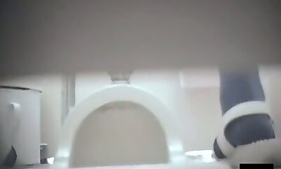 Exciting toilet spy cam shots of inexperienced bushy slits