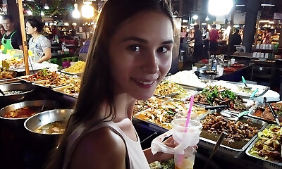 Alison Angel showcases her shaved coochie in outdoor public scene
