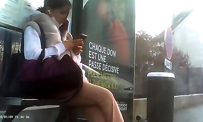 Asian brunette is often traveling by bus, because someone always gets to shag her brains out