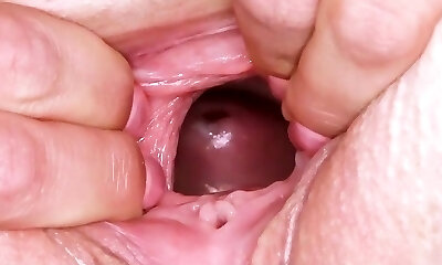 Slit toying solo beauty in close up