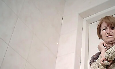 Lewd buddy spies on masturbating old breezy and eats her wet mature cunt