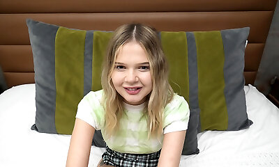 This POV casting video starlets an 85 lb blonde teenager amateur