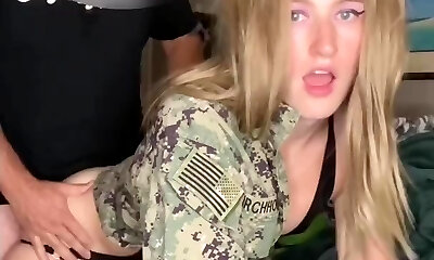My trans gf works in the army, but no one knows that she has a schlong