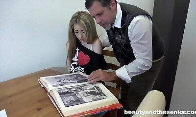 Super-steamy teen Vladlena gets facialized by old Philippe