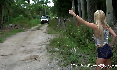 Petite platinum-blonde teen brutally fucked and facialized in a van
