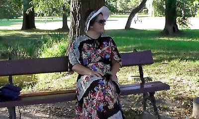 Exhibitionist grandma lets herself be brought to orgasm right in front of a hotel
