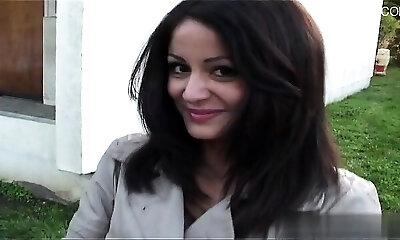 Pale Bony Brunette Surrenders Her Labia and Mouth To 5 Big Dicks In Her 1-st Interracial Gangbang