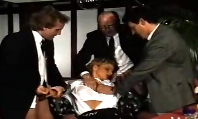A hefty-boobed cougar satisfies the sexual needs of workers to raise their spirits.