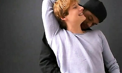 Ash-blonde twink gets fucked hard by a gay black guy