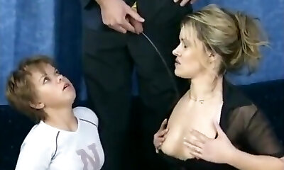 Filthy amateur chick are giving awesome double oral in FFM threesome fuck vid
