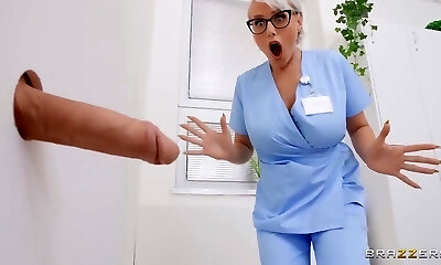 Attractive MILFie nurse in fishnet stuff works on strong giant BBC