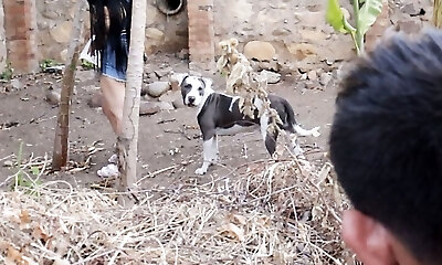 Mature fat farm woman gets her pussy pummeled outdoors