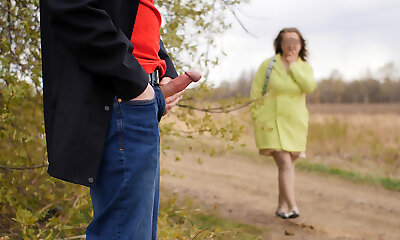 Libor and Marcela wasting her mature pussy outdoors