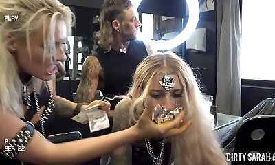 First-timer all sweaty blond haired nympho with pierced muff is analfucked